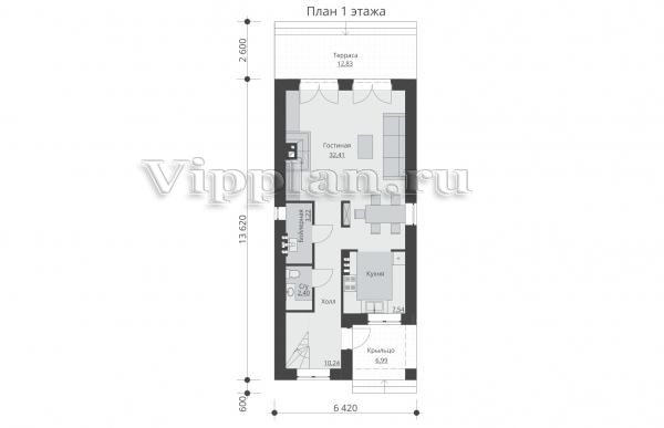 | Размеры дома: | 13.62м×6.42м |
